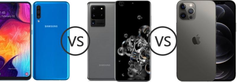 Samsung Galaxy A50 Vs Samsung Galaxy S20 Ultra 5g Vs Apple Iphone 12 Pro Phone Comparison